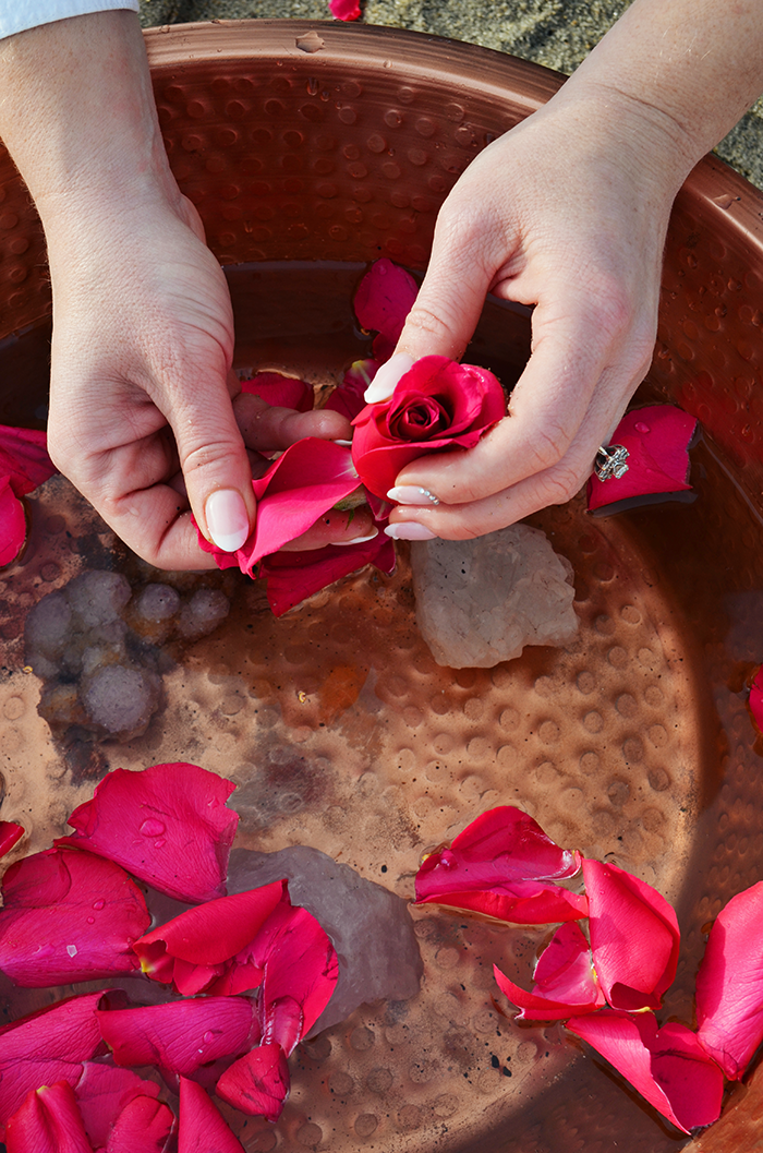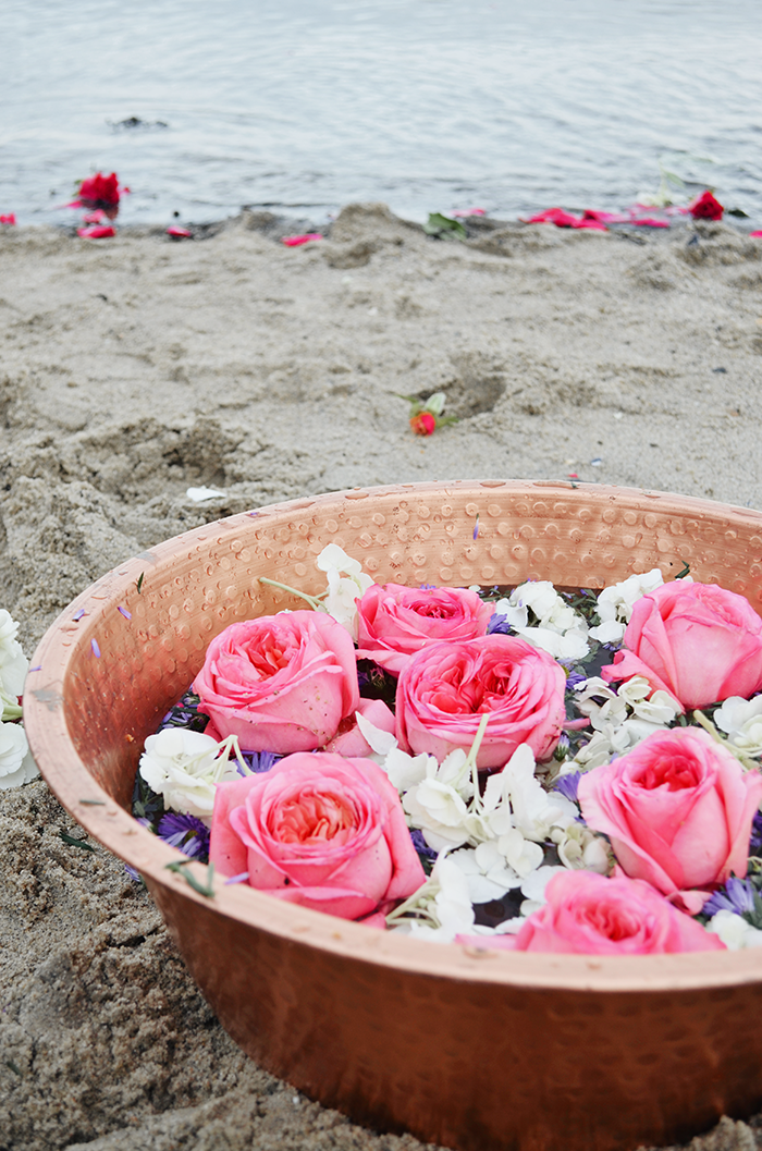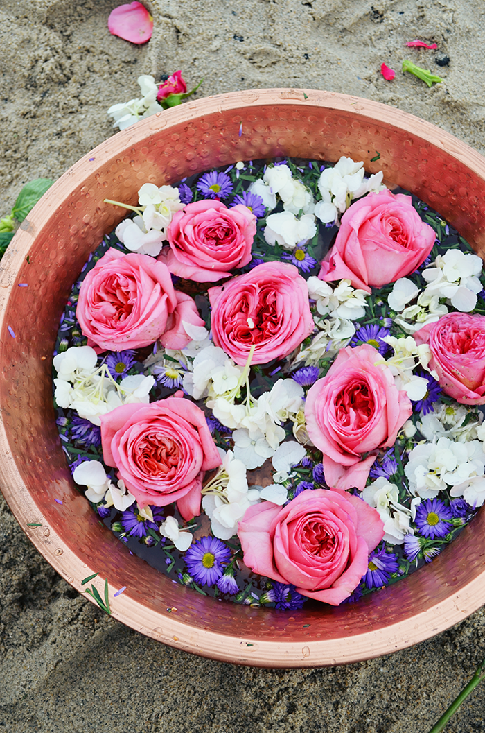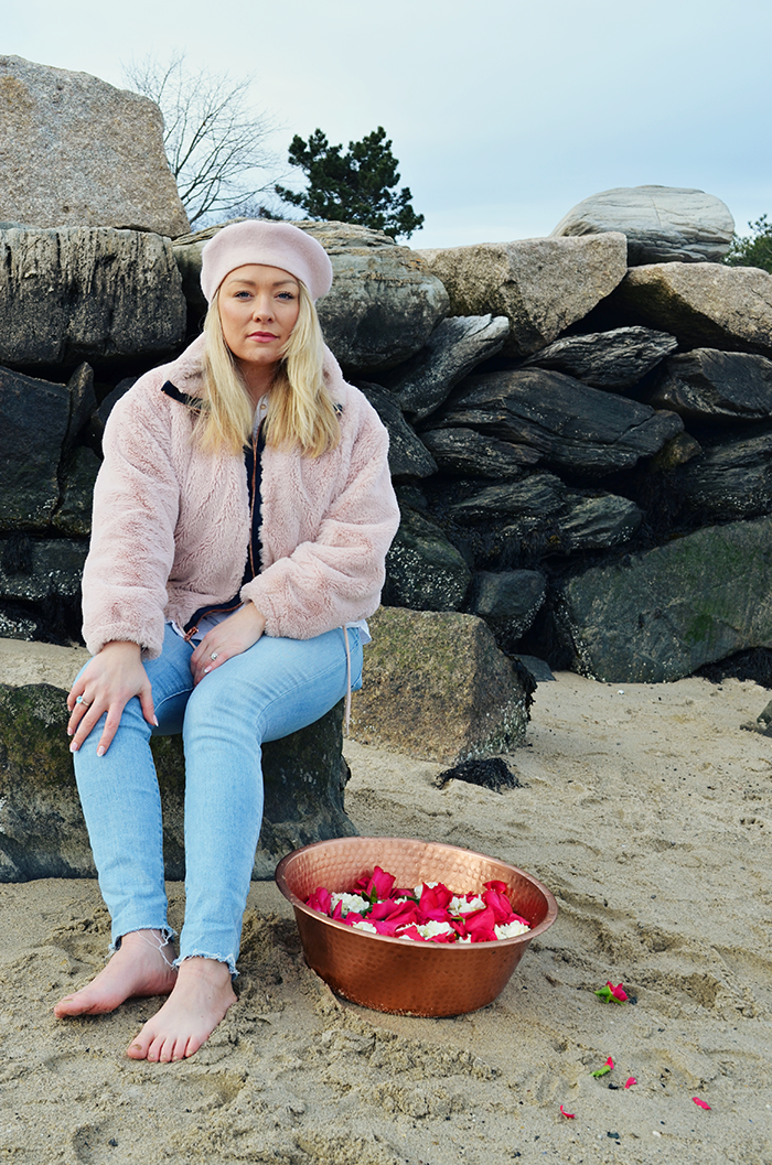 Using the leftover flowers after we made a foot soak using the salt water from the sea. Foot soaks help ground the air and ether elements that tend to increase around the winter season. Studies show that foot soaks can help relieve anxiety and may even improve sleep quality. They are also a great way to sit still and set intentions. For instance, as we enter a new life chapter, what have you learned this past year about yourself? What do you wish to manifest moving forward?